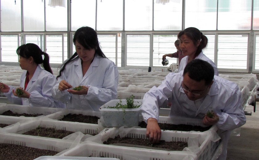 工作人员移栽试管苗