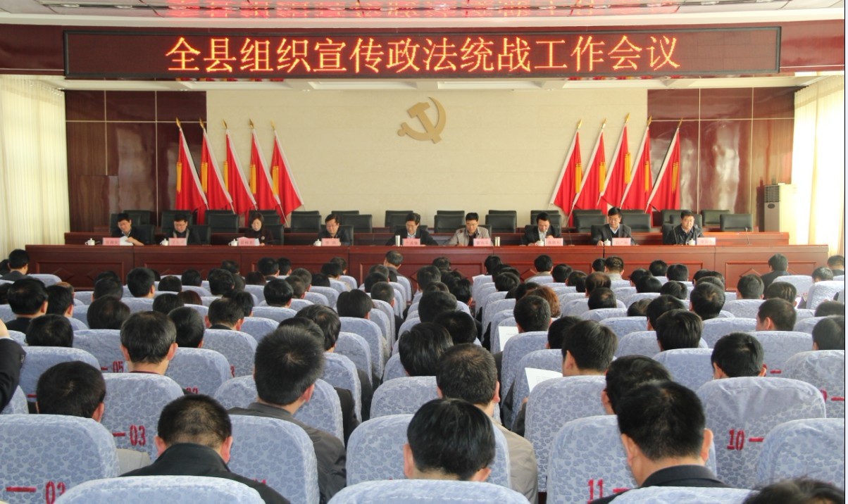兰孟偃强调:今年是全面贯彻落实党的十八大精神的开局之年,也是深入实施“十二五”规划承前启后的重要一年。党的十八大提出了一系列新任务、新要求,赋予组织、宣传、政法和统战工作新的使命、新的责任。全县组织、宣传、政法、统战部门要以党的十八大精神为统领,按照“围绕中心、服务大局,奋发有为、保障有力”的总要求,进一步理清思路、找准问题,突出重点、大胆创新,更好地适应发展、服务发展、推动发展,为全县各项事业的发展提供坚强有力的保障。