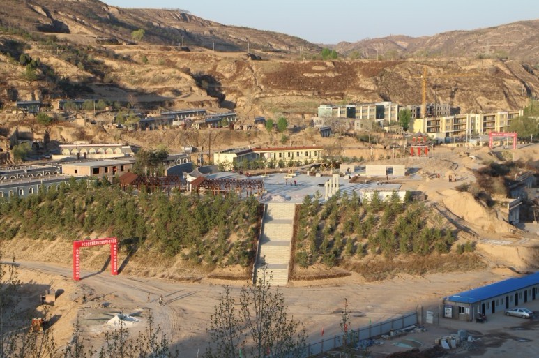 削山改河工程的实施为涧峪岔镇开辟建设用地94亩,安置农户600户,约2400人。俯瞰现在的削山改河工地,一条条沟壑被填平,一座座高山被削低,整个建设工地呈现出一片片热火朝天的景象。