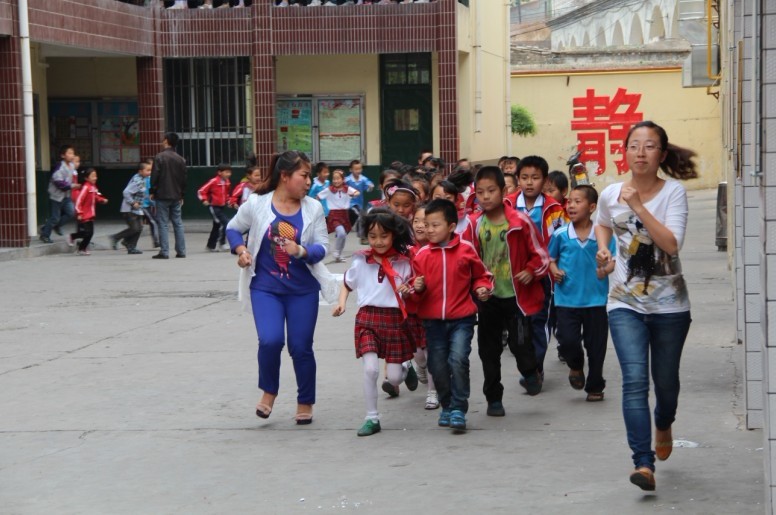 演练活动时,随着地震警报响起,各班学生在班主任的组织指导下,安全躲在课桌下。一分钟后进入疏散环节,全校师生迅速从教室按规定顺序、规定线路进行紧急疏散。疏导老师在楼梯口加以指引,防止学生在紧急疏散时出现相互推挤和掉队现象。在不到5分钟的时间里,参加演练的所有师生迅速从教室进入避险区。通过演练,使师生们掌握了应急避震的正确方法,熟悉紧急疏散程序和线路,确保在地震来临时能够沉着冷静,及时避险。