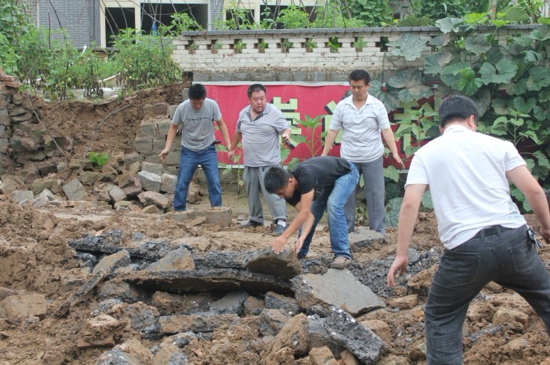 史家畔乡在抓好防汛救灾的同时,积极组织指导群众开展生产自救,力争把灾害损失降到最低水平。截止目前,共疏通乡村道路12公里,加固恢复大棚16座。李家沟现代农业园区的大棚建设和湫峪沟万头养猪小区正在紧张施工当中。图1为李家沟村民修复受灾大棚。图2为寺湾村民与过路群众紧急处理塌陷路段。 杨晗 摄
