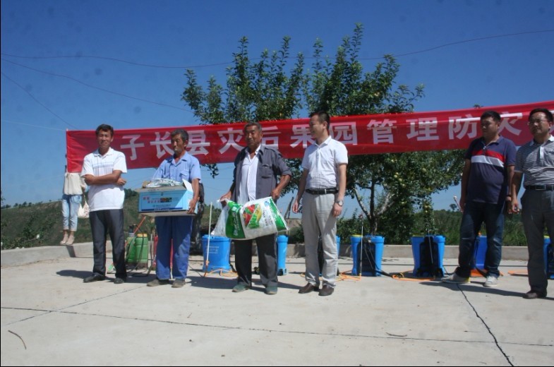 本报讯(石岗岗)8月9日,栾家坪中心社区联合团县委、果业中心在庙湾沟福林山地苹果基地举行了灾后重建果园管理培训大会。果业中心技术员从低温环境对果树、果品可能带来的危害,病虫害防治等方面知识进行详细讲解,并耐心回答群众提问。团县委表示将通过与县农行合作,为果农发放小额贷款,解决果农在灾后重建方面的资金问题。培训会上,果业中心为果农免费提供1200亩的农药,并组织技术员和果农现场对果树进行病虫害防治。