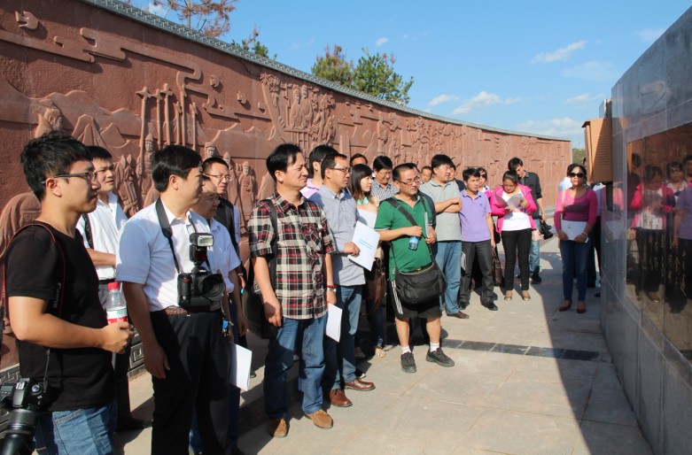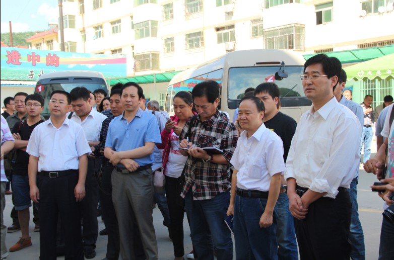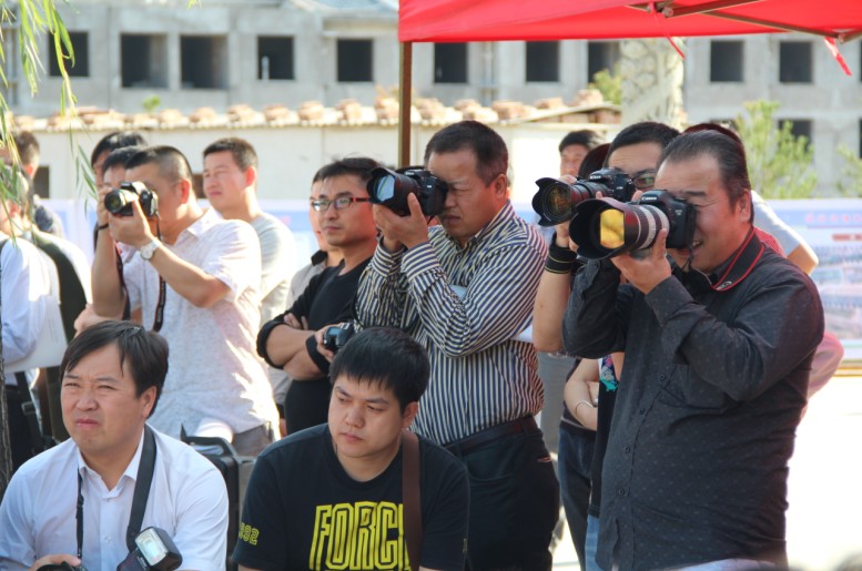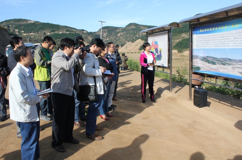 中省市媒体记者在西山沟治沟造地工程现场进行采访