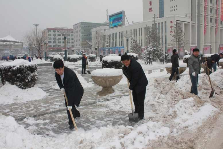 雪情就是命令,2月7日,在春节收假后上班第一天,县委书记兰孟偃,县委副书记、县长谢延明,县人大常委会主任杨应东,县政协主席杜建军等在家县级领导以身作则,亲临一线,与广大干部职工及环卫工人一起挥锨铲雪,确保市民出行安全和生产生活正常运行。