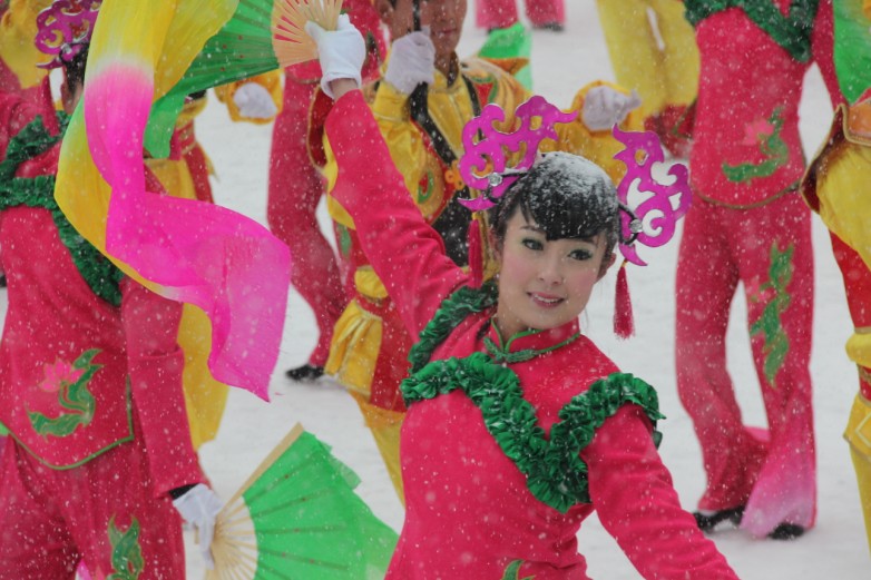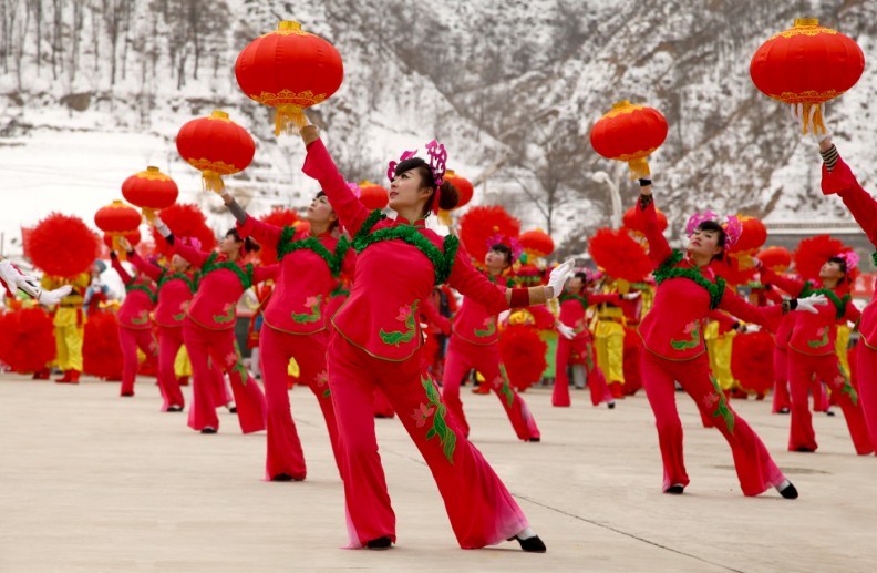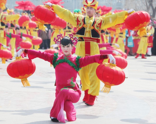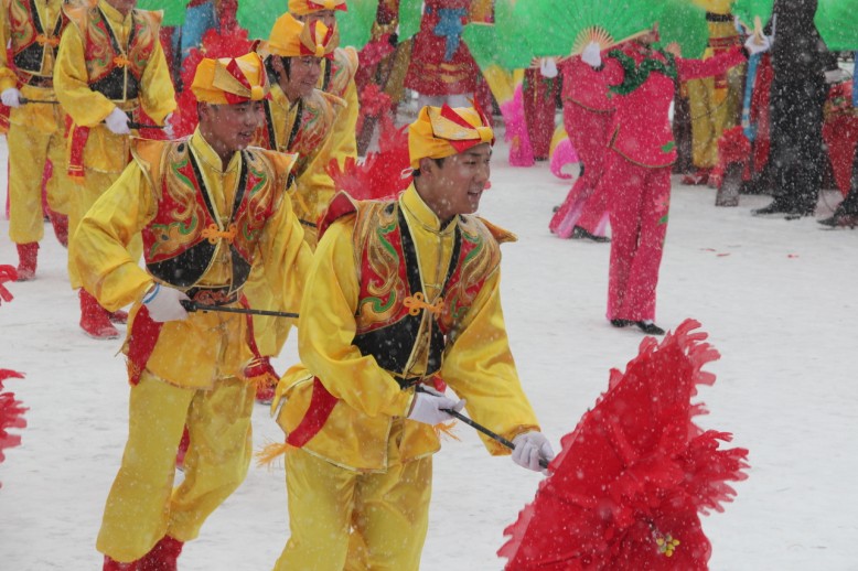 火红的彩绸舞出欢快的旋律,喜庆的舞蹈带来新春的祝福,380名秧歌队员身着鲜艳的服装,和着欢快的锣鼓唢呐节拍,把热烈喜庆的气氛传递给围观群众。中午十二点秧歌队从南门出发,伴随着欢快的锣鼓,演出人员个个精神抖擞,手拿彩扇、红伞,有序地进行过街表演,充分展示了富裕起来的我县人民群众在县委、县政府的引领下,全面建设小康社会、追求幸福生活、创造美好未来的坚定信心和决心。