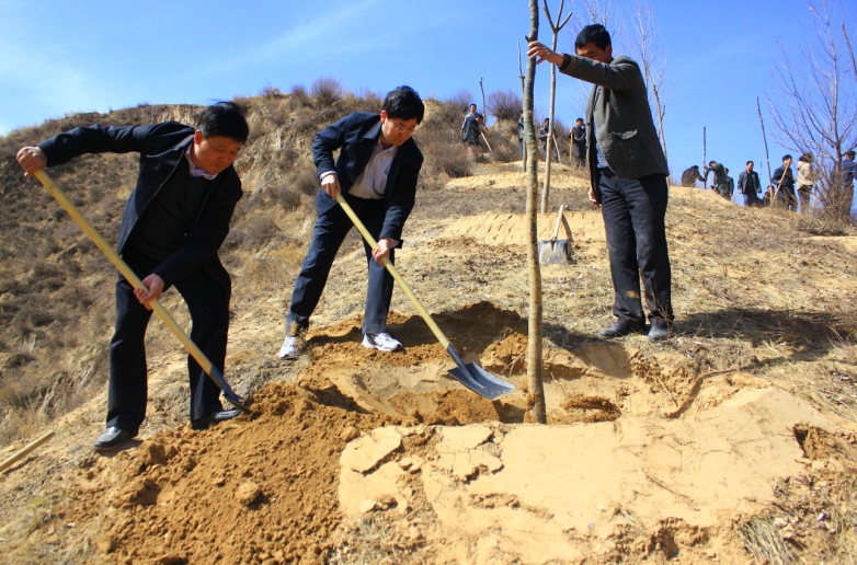 天公作美,暖阳当头,在安定镇三十里铺村的一处向阳半山坡上,领导干部和群众一起参加义务植树劳动,为生态子长建设再添一抹新绿。植树现场一片忙碌,大家将国槐树苗植入后挥锹培土、踏平压实,并拎起水桶,为新栽的树苗浇水灌溉。领导干部们一边劳动一边和群众了解树种来源、管护模式等情况,并希望相关部门要加强管理,提高树木成活率。兰孟偃在劳动现场接受采访时表示,我县县级领导干部已经进行了为期三天的封闭式学习,在此基础之上今天再次组织全县县级领导干部来到这里进行义务植树劳动,还要访民户、问民意,与群众同吃同住同劳动,以实际行动参与到教育实践活动中,通过县级领导干部带动,促进全县教育实践活动的深入开展,并取得扎扎实实的成效。